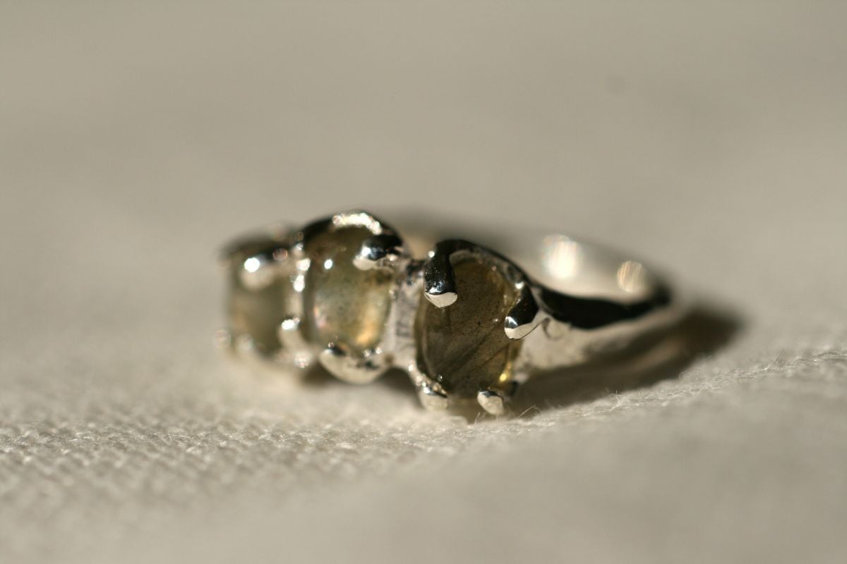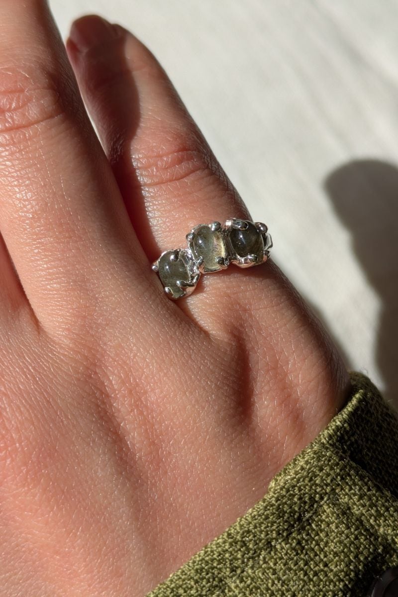 ラブラドライトを石留したリングです。 くすんだ緑の色合いが特徴的なラブラドライトは、光の加減でさまざまな表情を見せてくれます。 号数:♯7.5 【Material】 Silver925 【Size】 7.5号 ※こちらの商品は1点ものです。 ※YUUJEWELRYでは、商品をひとつひとつ手作業で制作しております。そのため、風合いがそれぞれ微妙に異なる場合があります。 ※色合い・質感の違いや、天然ゆえの内包物、小さな傷もその石が持つ個性としてお楽しみください。